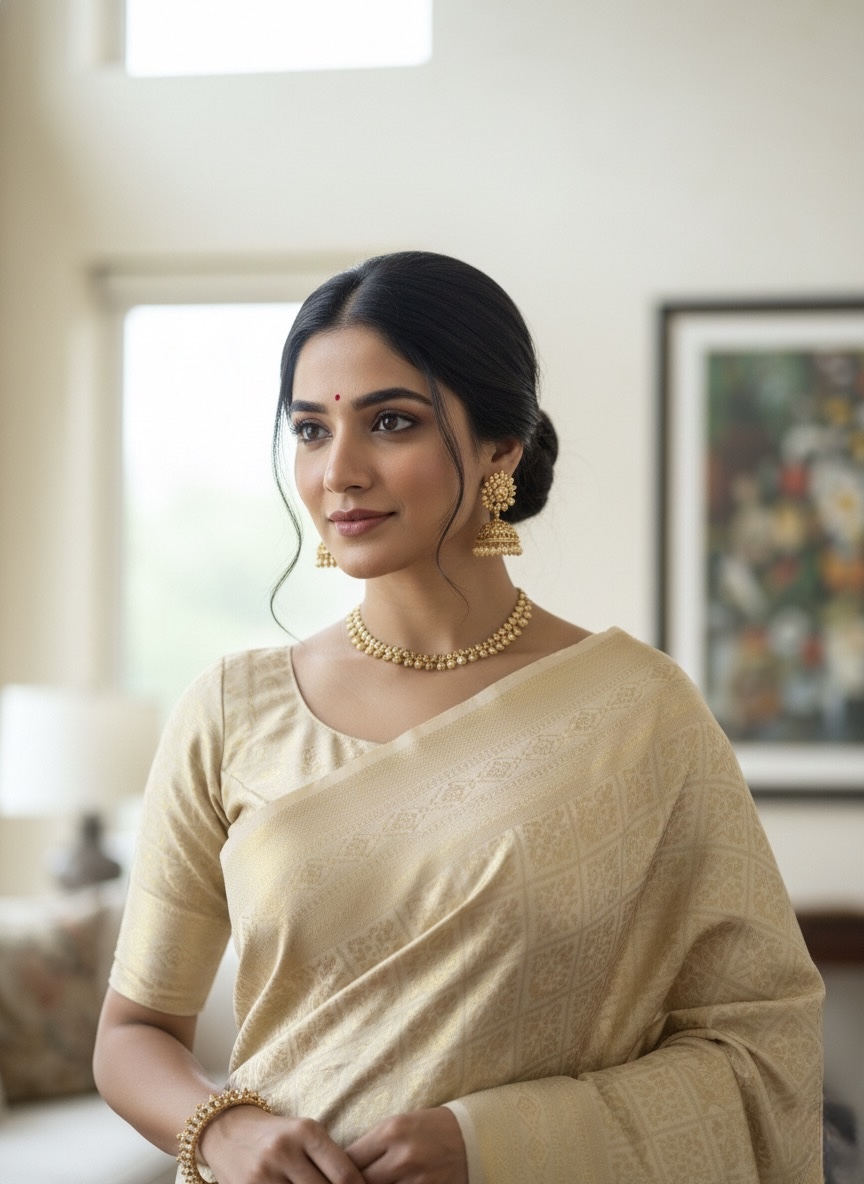 Soft silk cream saree